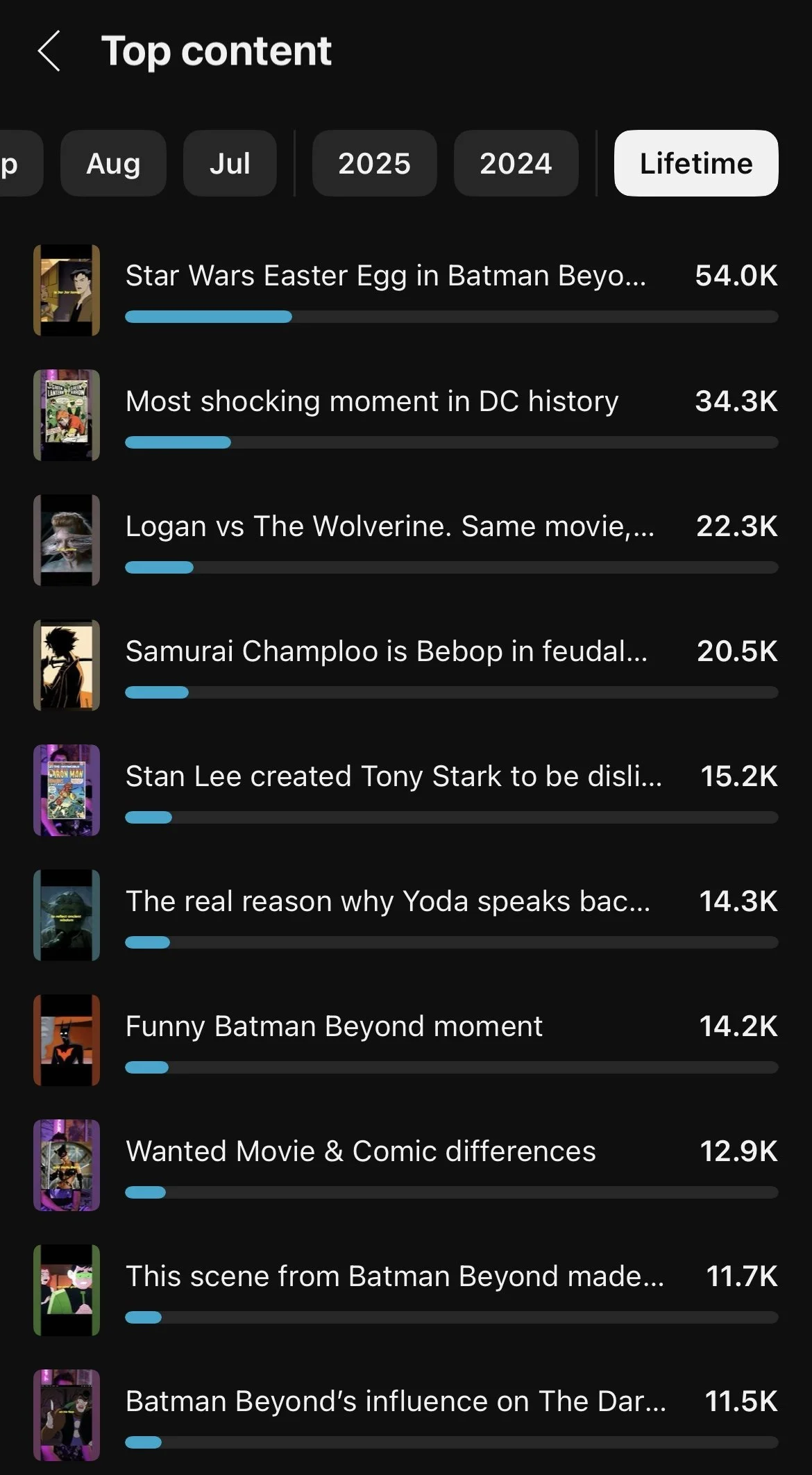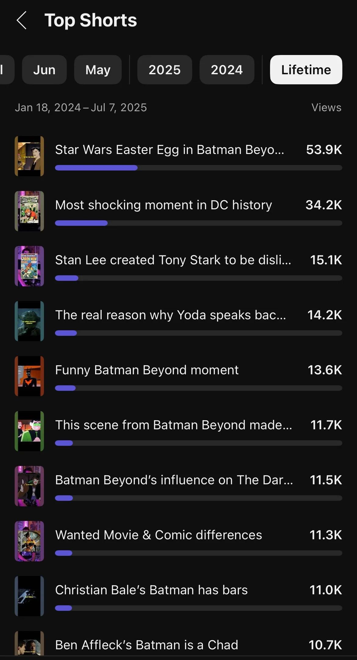 I manage the full production pipeline — writing, filming, editing, captioning, and analyzing performance data to refine my strategy. One of my most successful shorts, “Star Wars Easter Egg in Batman Beyond,” organically reached 53,900+ viewers, combining visual polish, research, and engaging commentary.